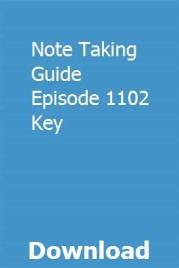 Download note taking guide episode 1102 answer key PDF online is a convenient and frugal way to read note taking guide episode 1102 answer key you love right from the comfort of your own home. Yes, there sites where you can get PDF "for free" but the ones listed below are clean from viruses and completely legal to use.